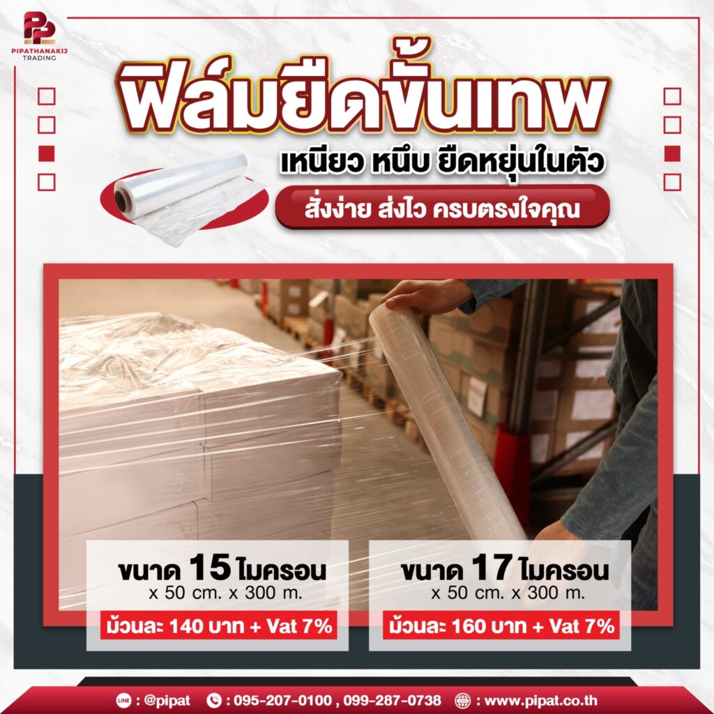 ปกป้องสินค้าจากความสกปรก ละอองน้ำ การแตกร้าว หรือตกหล่นระหว่างการขนส่งด้วยฟิล์มยืดคุณภาพดี เนื้อเหนียว ใส ยืดหยุ่นดี